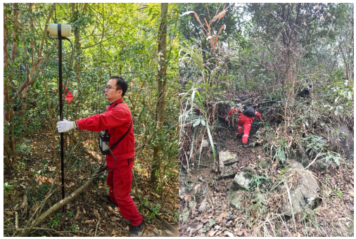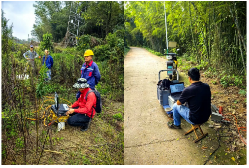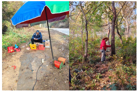 图1 龙桥镇东部马山村-龙桥化工园一带岩溶地质调查工程物探项目组人员在开展瞬变电磁(左)及浅层地震(右)工作